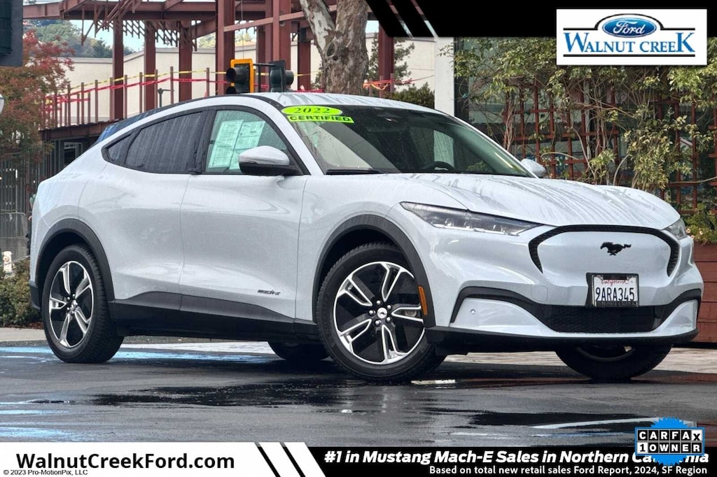 ***Warm Up Your Winter with These Hot Deals at Walnut Creek Ford***. . . Walnut Creek Ford has proudly served the Bay Area for over 30 years. A family-owned and operated business, our goal has always been to help customers find a vehicle that fits their needs, and to keep it running in top condition with our award-winning service and parts department. This vehicle MAY include the following features. Please verify the features to ensure accuracy before purchasing the vehicle. Equipment Group 100A, Interior Protection Package (Pre-Installed) (Cargo Area Protector and Front & Rear Floor Liners), 4-Wheel Disc Brakes, 6 Speakers, ABS brakes, ActiveX Bucket Seats, Air Conditioning, Alloy wheels, AM/FM radio: SiriusXM with 360L, AM/FM Stereo, Apple CarPlay/Android Auto, Auto High-beam Headlights, Auto-dimming Rear-View mirror, Automatic temperature control, Axle Ratio: 9.05, Brake assist, Bumpers: body-color, Compass, Delay-off headlights, Driver door bin, Driver vanity mirror, Dual front impact airbags, Dual front side impact airbags, Electronic Stability Control, Emergency communication system: 911 Assist, Exterior Parking Camera Rear, Four wheel independent suspension, Front anti-roll bar, Front Bucket Seats, Front Center Armrest, Front dual zone A/C, Front License Plate Bracket, Front reading lights, Fully automatic headlights, Garage door transmitter, Heated door mirrors, Illuminated entry, Knee airbag, Low tire pressure warning, Navigation system: Connected Navigation, Occupant sensing airbag, Outside temperature display, Overhead airbag, Overhead console, Panic alarm, Passenger door bin, Passenger vanity mirror, Power door mirrors, Power driver seat, Power steering, Power windows, Radio data system, Rain sensing wipers, Rear anti-roll bar, Rear seat center armrest, Rear side impact airbag, Rear window defroster, Rear window wiper, Remote keyless entry, Security system, SiriusXM Radio w/360L, Speed control, Speed-sensing steering, Speed-Sensitive Wipers, Split folding rear seat, Spoiler, Steering wheel mounted audio controls, SYNC 4A w/Enhanced Voice Recognition, Telescoping steering wheel, Tilt steering wheel, Traction control, Trip computer, Turn signal indicator mirrors, Variably intermittent wipers, Wheels: 18 Carbonized Gray-Painted Aluminum, and Wheels: 19 Shadow Silver-Painted Aluminum.. . . CARFAX One-Owner.. . Certified. Ford EV Certified Details:. . * Every EV Certified Vehicle Must be a Fully Electric Ford Model up to 6 years Old With No More Than 80,000 Miles on the Odometer. It Also Has to Pass an Extensive 127-Point Inspection. Plus, Each Comes With Manufacturer-Backed Comprehensive Limited Warranty Coverage, 8-Year/100,000-Mile (whichever comes first) Base CARE EV Limited Warranty coverage, a 14-Day/1,000-Mile (whichever comes first) Money Back Guarantee, complimentary 24/7, Ford Roadside Assistance and 22,000 FordPass Rewards Points to use toward your first two maintenance visits