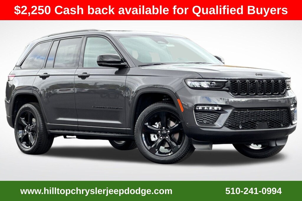 Baltic Gray Metallic Clearcoat 2025 Jeep Grand Cherokee Limited 4WD 8-Speed Automatic 3.6L V6 24V VVT 220 Amp Alternator, 2nd-Row Manual Window Shades, 4-Wheel Disc Brakes, 6 Speakers, 7 & 4-Pin Wiring Harness, ABS brakes, Active Noise Control System, Air Conditioning, Alloy wheels, AM/FM radio: SiriusXM with 360L, Anti-whiplash front head restraints, Audio memory, Auto-Dimming Exterior Driver Mirror, Automatic Headlamp Levelling System, Automatic temperature control, Black Appearance Package, Capri Leatherette w/Axis II Seats, Class IV Receiver Hitch, Dual front impact airbags, Dual front side impact airbags, Dual-Pane Panoramic Sunroof, Four wheel independent suspension, Front Bucket Seats, Front dual zone A/C, Front/Rear Doors & Liftgate w/Passive Entry, Gloss Black Exterior Accents, Heated front seats, Heated rear seats, Heavy-Duty Engine Cooling, Integrated Off-Road Camera, Intersection Collision Assist System, Luxury Tech Group II, Memory seat, Memory Steering Column, Navigation System, Normal Duty Suspension, ParkSense Front/Rear Park Assist w/Stop, Power driver seat, Power Liftgate, Power passenger seat, Power steering, Power Tilt/Telescope Steering Column, Power windows, Quick Order Package 22E, Radio data system, Radio: Uconnect 5 Nav w/10.1" Display, Rain Sensitive Windshield Wipers, Rear Back-Up Camera Washer, Rear Load Levelling Suspension, Rear window defroster, Rearview Autodim Digital Display Mirror, Remote keyless entry, Split folding rear seat, Steering wheel mounted audio controls, Surround View Camera System, Trailer Hitch Zoom, Trailer Tow Package, Ventilated Front Seats, Wheels: 18" x 8" Polished/Painted Aluminum, Wheels: 20" x 8.5" Gloss Black Painted Aluminum, Wireless Charging Pad.